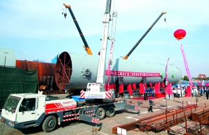 圖為丙烯[BingXi]塔制造[ZhiZao]成功進行交接 九月二十五日,國家重點工程[GongCheng]大慶石化公司年產(chǎn)一百二十萬噸乙烯改擴建工程[GongCheng]關鍵設備[SheBei]丙烯[BingXi]塔,經(jīng)過一百二十四天的加工制造[ZhiZao]全面完成,標志著乙烯工程[GongCheng]進入設備[SheBei]安裝階段。丙烯[BingXi]塔總重量七百一十五噸、直徑六點四米、高七十六米,該設備[SheBei]的成功制造[ZhiZao],為企業(yè)今后占領國內(nèi)高端大型煉化裝備制造[ZhiZao]市場提供了技術保障。