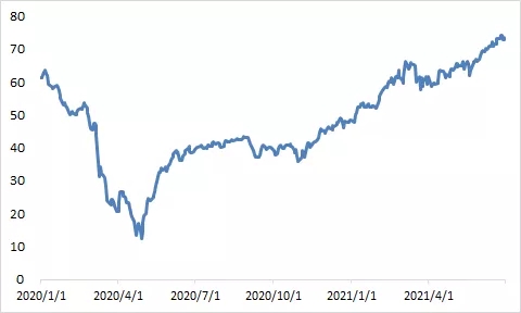 2021年上半年,國際原油價格大漲,從年初的47美元/桶拉漲至70美元/桶以上,半年漲幅超50%。且市場人士對于國際油價的后市更加樂觀,維多、嘉能可和托克等大型石油貿(mào)易公司的高管此前表示,油價還有上升空間,升至每桶100美元的可能性存在。